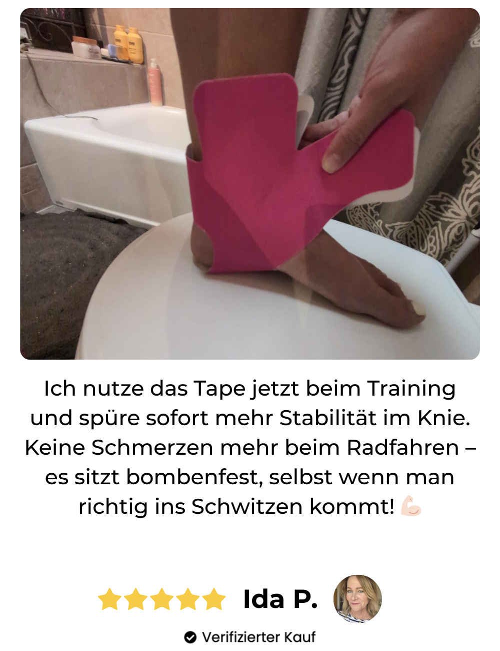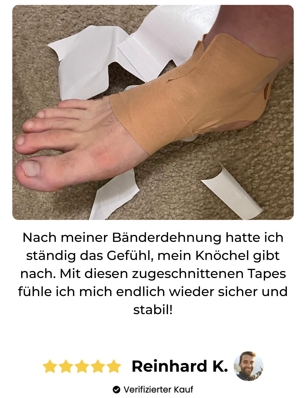 Mit TAPEX® musst du nichts zuschneiden, nichts abmessen und keine komplizierten Anleitungen studieren. Unsere Tapes sind bereits perfekt vorgeschnitten und lassen sich in Sekunden fehlerfrei aufkleben. Für sofortige Stabilität und spürbare Schmerzlinderung, ganz ohne Vorkenntnisse!